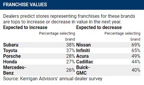 While 38% of Subaru dealerships surveyed anticipate valuation growth this year, that percentage is unlikely to be consistent across the country.