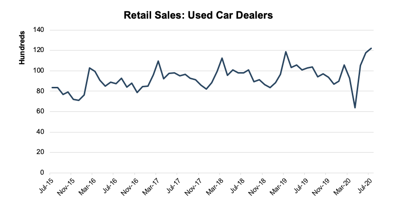 Although dealerships have shown an astute ability to pivot their business models to withstand this pandemic (check out our post on dealerships shifting to online sales for more on this), the overall stagnation in the economy from this dragging pandemic continues to be a hurdle for most industries. The government's stimulus package, which included the $1,200 payment to Americans and the extra $600-a-week payment to mitigate the effects of the pandemic, contributed to increased retail spending through June. However, with no second round of checks having been distributed and these packages expiring, spending has once again taken a hit.
