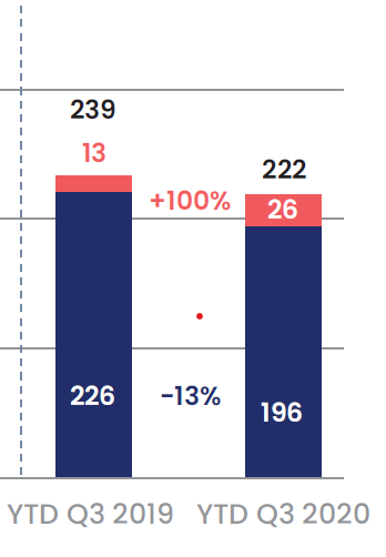 Many dealerships are on the back side of the family ownership life span, and high multiples are making exits more intriguing. Specifically, Kerrigan notes that multi-dealership transactions are up from 33 to 46, or an increase of 25% from the first nine months of 2019. Q3 2020 is tied for the second most multi-dealership transactions for the same time period in the past 5 years.