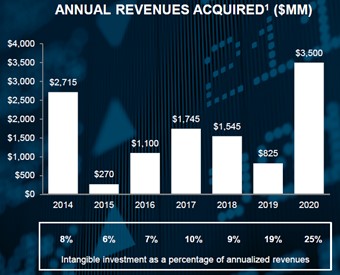 The franchised auto dealer space is fragmented by nature. As such, the few publics are frequently asked about consolidation in the industry, as they have both the experience to operate at scale and a liquid market for their equity which allows acquired dealers to achieve liquidity without necessarily losing the upside of their dealership in a transaction (either receiving stock or investing cash from the deal into that stock). However, despite plenty of transactions in the industry, public auto dealers have not typically provided much financial information on their targets aside from revenues. In a recent investor deck, Lithia took things a step further, quantifying its intangible investment as a percentage of revenues as shown below: