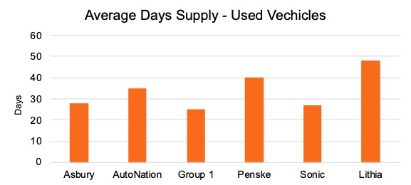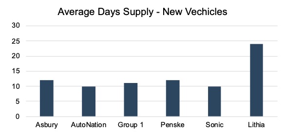 Supply chain disruptions caused by the microchip shortages continue to impact inventory levels on new and used vehicles for all auto dealers.  The public auto dealers are not immune from these conditions as well.  Average days’ supply for new and used vehicles for the six public auto dealers as of September 30 are as follows: