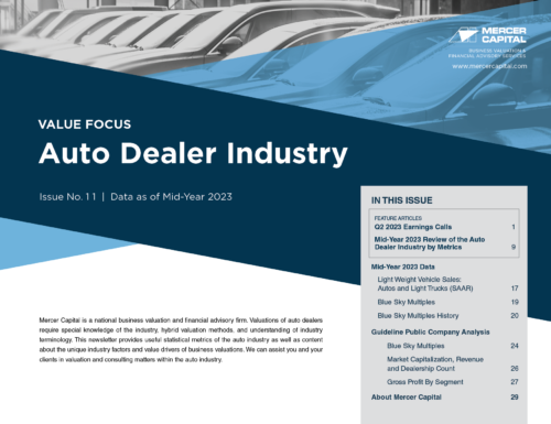 We are pleased to release our latest edition of Value Focus: Auto Dealer Industry Newsletter. The newsletter features a commentary on industry data from mid-year 2023. Additionally, this issue includes two timely articles: "Q2 2023 Earnings Calls" and "Mid-Year 2023 Review of the Auto Dealer Industry by Metrics."