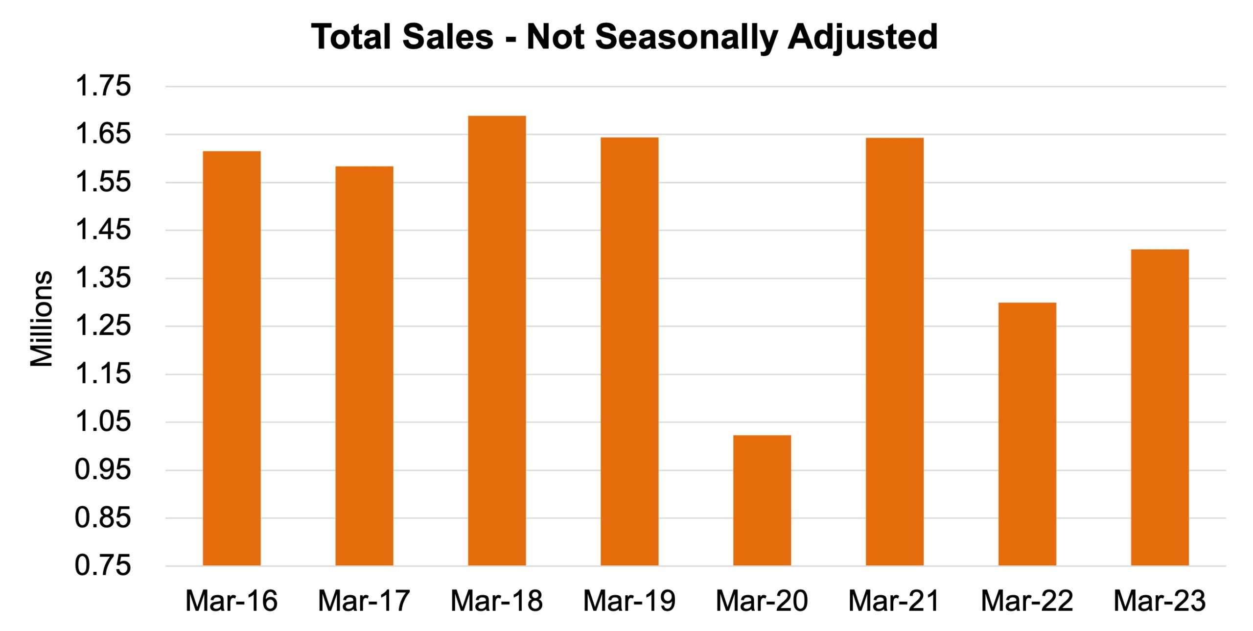 The chart below details the last eight year’s unadjusted sales in the month of March.