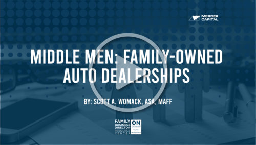 In addition to the video, we have included additional resources on this topic that might be helpful to you. The Family Business On Demand Resource Center is a one-stop shop for enterprising families and their advisors facing the financial challenges that are common to family businesses. While not specific to the oil and gas industry, there you’ll find a curated and organized diverse collection of resources from Mercer Capital’s family business professionals, including more 5-minute videos, articles, whitepapers, books, and research studies. The perspectives offered on the Family Business On Demand Resource Center are rooted in our experiences at Mercer Capital, working with hundreds of enterprising families in thousands of engagements over the past forty years. Our main focus is on the financial challenges faced by family businesses. There’s nothing else like it, and we hope you will visit the site. We plan to feature additional videos from auto dealer industry team in the near future.