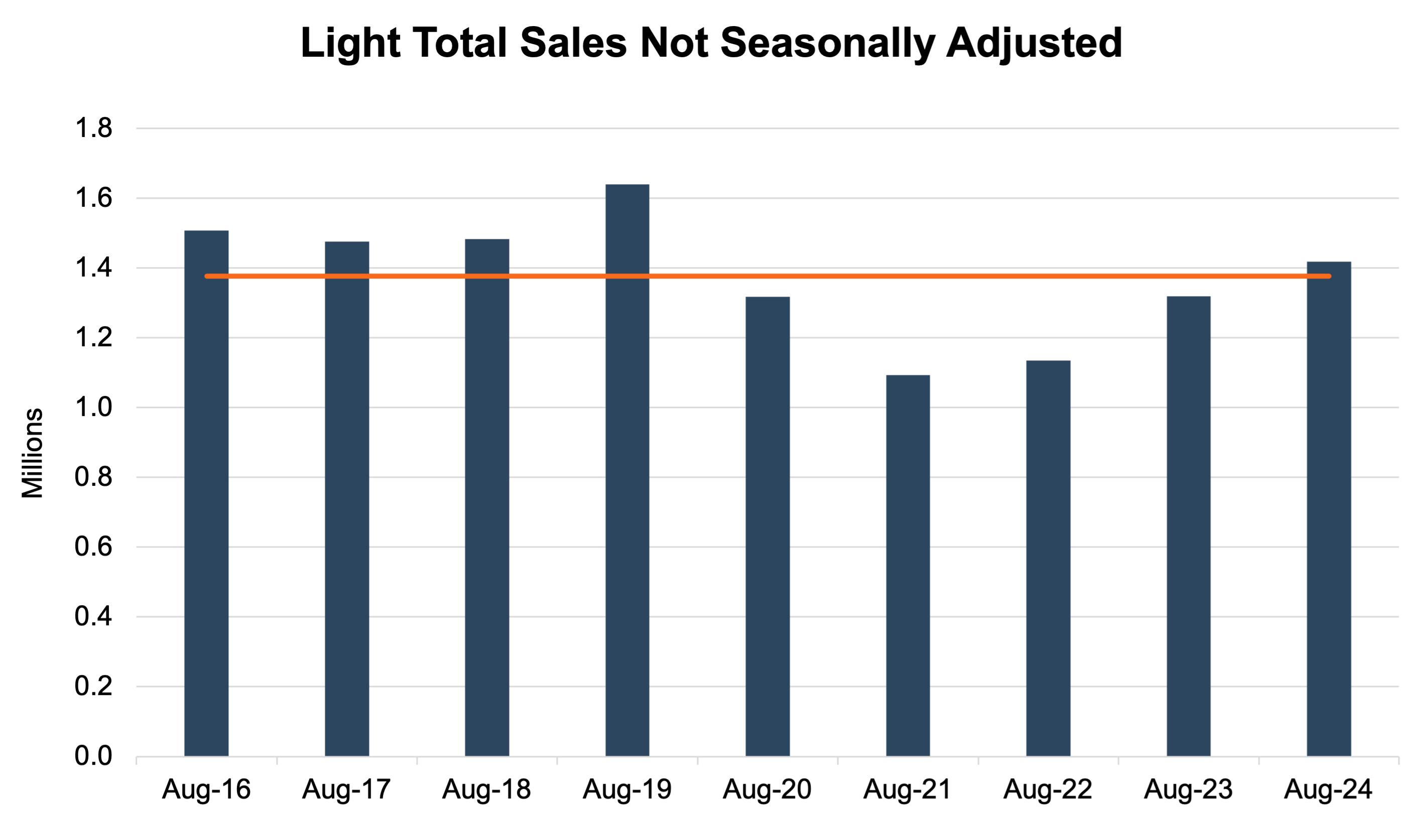 See the chart below for a look at unadjusted sales over the last nine Augusts: