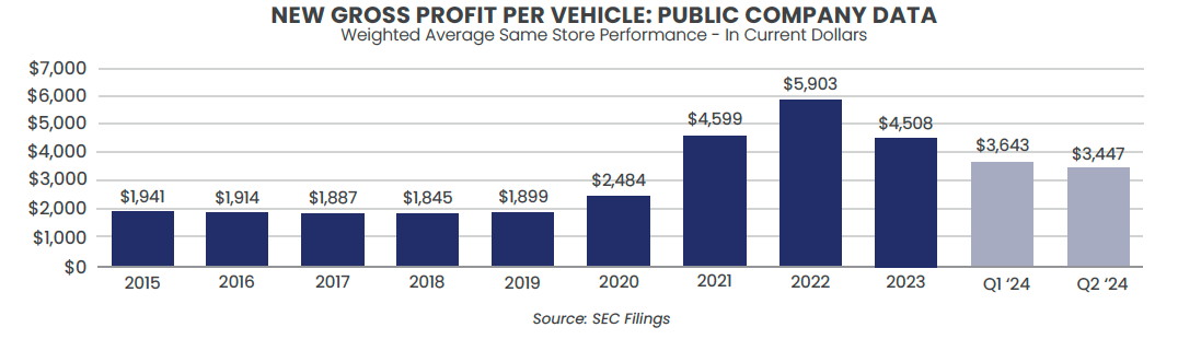 Dealership profitability (Gross profit per unit pre-tax earnings margins)