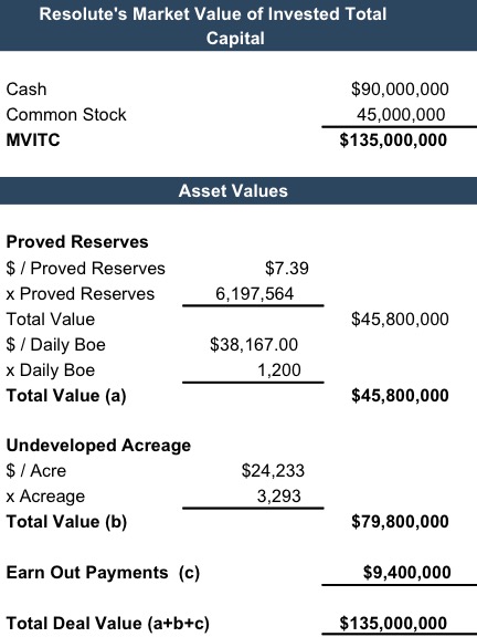 Resolute reported the value of the Proved reserves as $45.8 million and Undeveloped Acreage as $79.8 million.