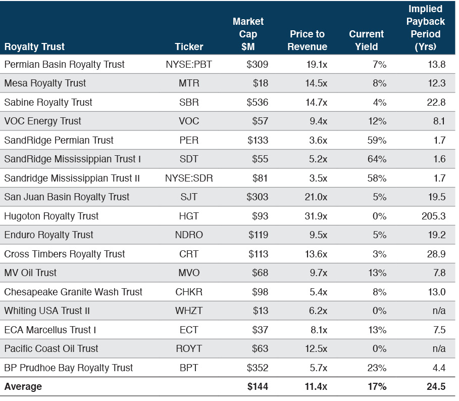 Market indications are available in the form of publicly traded oil & gas (“O&G”) royalty trusts. There are approximately 17 oil and gas focused royalty trusts publicly traded, as of the date of this article.