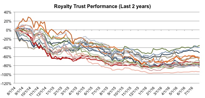 As a primer for O&G royalty trusts, these trusts hold various royalty and net profit interests in wells operated by large exploration & production companies. These trusts have little in the way of operating expenses, have defined termination dates, and can be an investment to provide exposure to oil and gas prices. This Motley Fool article, from 2014, explains the pros and cons of investing in this sort of vehicle.