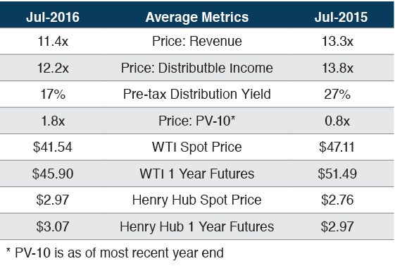 - Yields were higher last year as trailing yields had not caught up to the quickly falling market price (from August 2014 to July 2015, the group was down 40% to 60%).