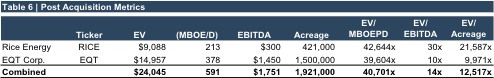 Considering the purchase price implications of the Rice Energy transaction, based upon the publicly disclosed information, the assets to allocate to fair value appear as found in Table 5.