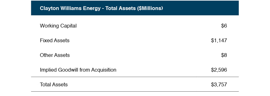 Earlier, we displayed the high level categories for an allocation of purchase price. Two of these categories are oil and gas related assets: (1) the fixed assets on the balance sheet; and (2) the implied goodwill value. Each of these is inter-related as a majority of the fixed assets are related to the exploration and production of oil and gas resources. Based upon our experience, much of the “implied goodwill” is related to the present value of future benefits of the production of oil and gas. The valuation for current production and proved developed reserves can be straight forward. CWEI more than likely prepared a reserve report which would aid in the valuation of the currently producing wells and the remaining proved reserves. However, the valuation gap between the proved developed reserves and the remaining proved undeveloped, probable and possible reserves or acreage value can be detailed, tedious, and complex. The historically low oil and gas price environment and financial tension within the industry creates a complicated market place for using market transactions as indications of value.