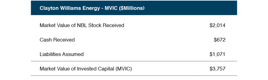 Based upon the consideration given by NBL, here is the implied market value of invested capital (MVIC) for CWEI: