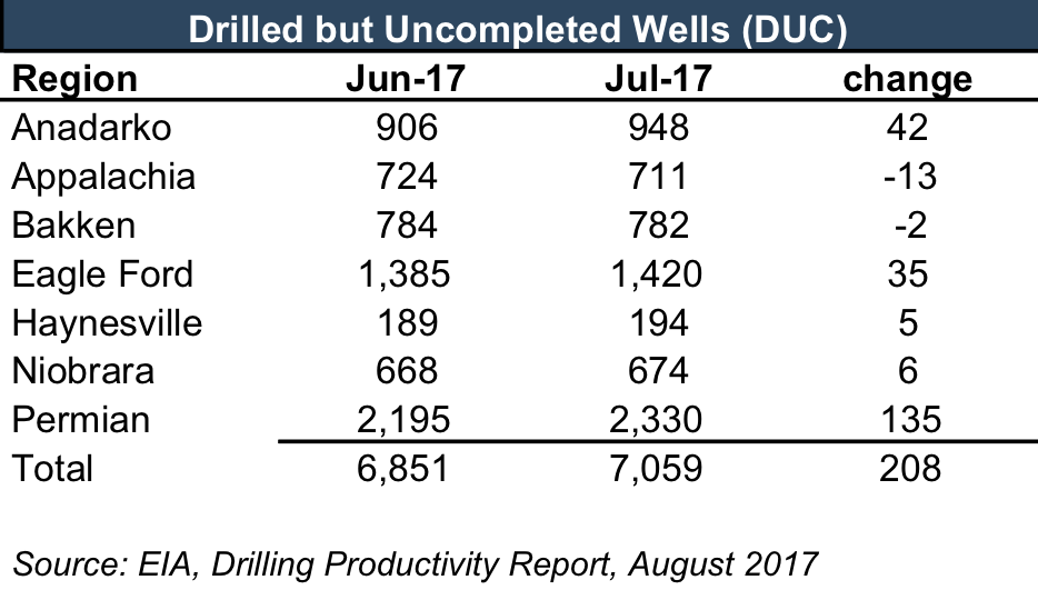DUC’s are growing quickly and the market continues to pay more attention to them. In fact, the EIA this month included the Anadarko basin for the first time in its DUC data and drilling report.
