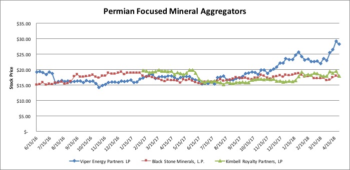 With the interest rate environment near all-time lows, many investors are looking for alternative investments to provide higher yields. This has driven private equity money into oil and gas. While part of private equity is targeting returns in operating exploration and production companies, mid-stream assets and refineries, significant money has found its way into the mineral and royalty market. Over the past four years, the mineral business has changed due to a surge in popularity. Minerals provide higher yield investment opportunities in a low yield environment. As a result of the surge, buying minerals is getting more and more competitive. Many of the speakers mentioned the prices for mineral buyers are increasing, and the market is attracting larger and more efficient mineral buyers. One speaker mentioned that prices on the ground have increased 40% to 50% in the last several years. In effect, increased competition is making it tough for the “small guys” to compete. A low yield investment environment is driving more money into the industry, increasing the number of buyers, increasing competition, and driving up prices of mineral interests. The chart below demonstrates the upward trend of the three most discussed mineral "aggregators" at the Minerals Workshop.