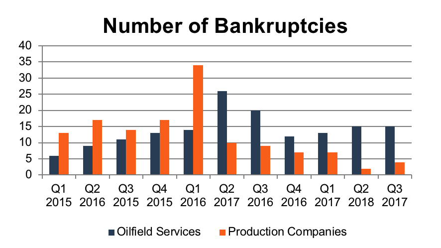 While bankruptcies in the E&P sector slowed in 2017, bankruptcies continued in the oilfield service industry.