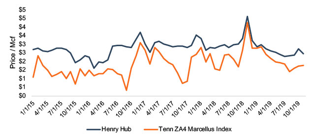 U.S. dry gas consumption will finish at an all-time high of 84.3 Bcf per day in 2019 and that figure will continue to grow into 2020. However, if gas investors are celebrating, no one knows where the party is. In reality, the investing atmosphere is gloomy with commodity prices consistently below $3.00 per MMcf on the NYMEX and even lower in some locations. The valuation environment is dispiriting for many investors in Appalachia. It doesn’t take long to get buried in a cavalcade of adverse indicators, corporate overhauls, depressed EBITDA multiples and state sized swaths of uneconomic acreage. Data suggests some producers could spend the foreseeable future languishing in shareholder jail or bankruptcy court.
