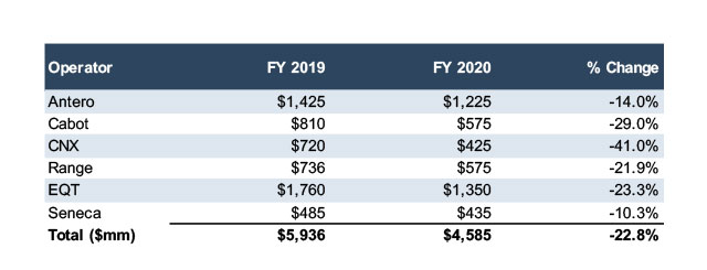 Due in part to the lack of available capital, early projections show capex reductions of 23% in 2020.