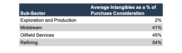 - Oilfield services transactions had the most diverse set of allocations to intangibles.