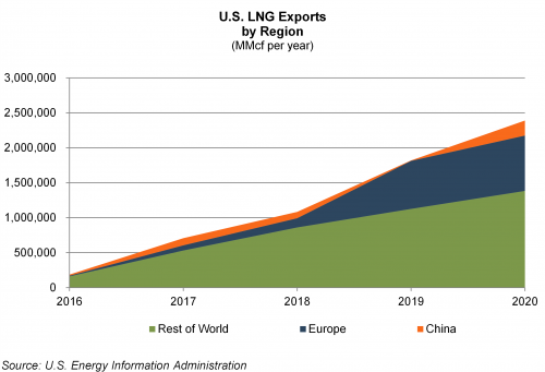 Two regions are driving demand for U.S. LNG exports. The first is Europe. After the much colder than usual winter, natural gas inventories remain well below typical seasonal levels. As a result of the lower inventories, Europeans are paying four to five times as much for natural gas relative to what is being paid in the U.S. That creates quite the incentive for U.S. produced natural gas to be exported, rather than staying within the country. The second is China. Reuters reports that China has become concerned in regard to its country-wide fuel security and is facing a winter fuel supply gap. That, in the midst of Asian gas prices that have increased more than 400% in 2021, has led to advanced talks between top Chinese energy companies and U.S. LNG exporters for the purpose of locking-in future U.S. LNG export volumes.