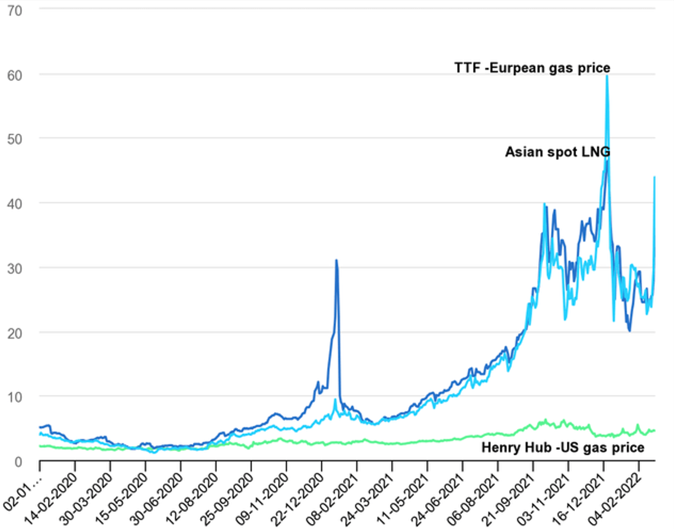 Now, in Europe, prices remain incredibly high, particularly for early next year. When the cold weather finally hits, concerns remain that Europe could quickly burn through its gas reserves, potentially leading to extreme tightness in supplies after Christmas. Gas at around €115 per megawatt hour is equivalent to almost $180 per barrel in oil terms. Contracts for January have been above $230 per barrel equivalent.