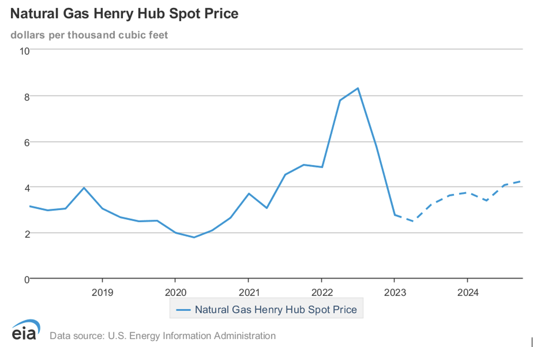 Oil and gas prices are no stranger to volatility, as evidenced by the first quarter of 2023. WAHA Hub and Henry Hub natural gas prices fell sharply. As shown below, Henry Hub hit the lowest price since the fourth quarter of 2020: