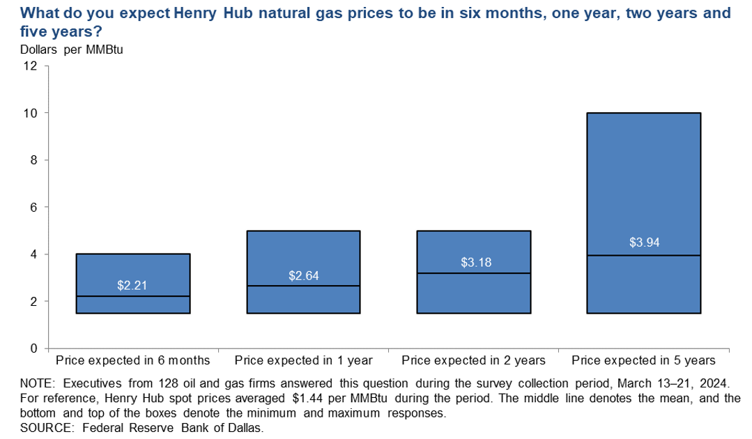 However, this also comes as one commenter in the survey mentioning that natural gas needs to be at $4.00 to attract exploration attention from their firm. (That’s not true for all firms though.)