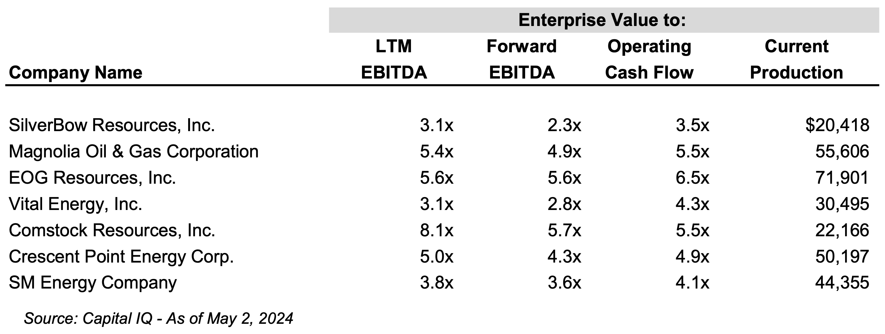 Companies that pay a dividend tend to have higher multiples as well. Kimmeridge has pointed this out and also proposed a dividend in their merger proposal. However, adding a dividend is not a guarantee of a value boost. Comstock Resources suspended its dividend early in 2024, and its stock has gone up significantly since then. However, it is also a gas producer only, which has hamstrung it in a cash burn position so far in 2024. SilverBow’s shift towards liquids has buoyed its cash flow.