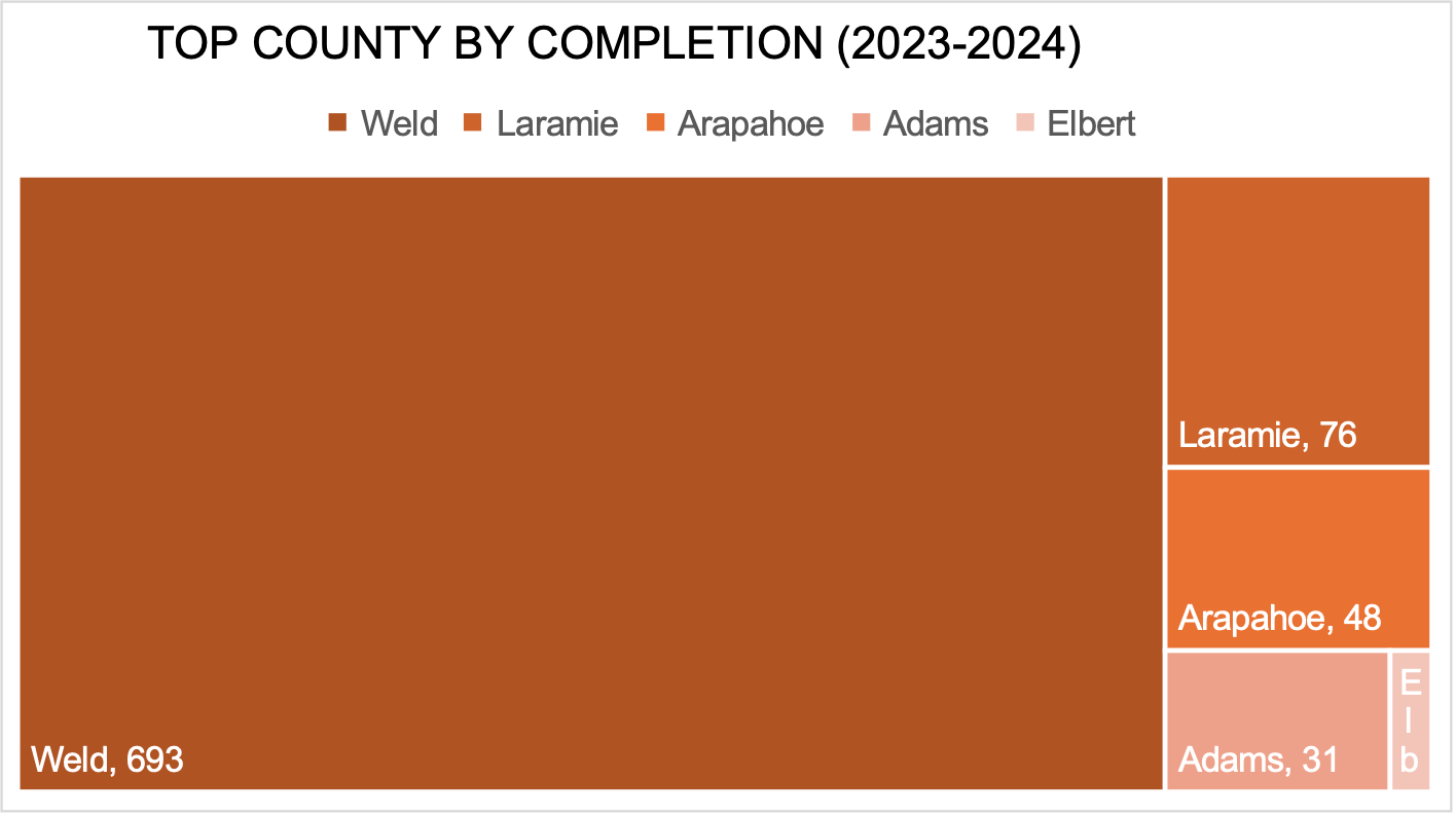 These completions were primarily within Weld County, which accounts for 80%-90% of the basin’s production.