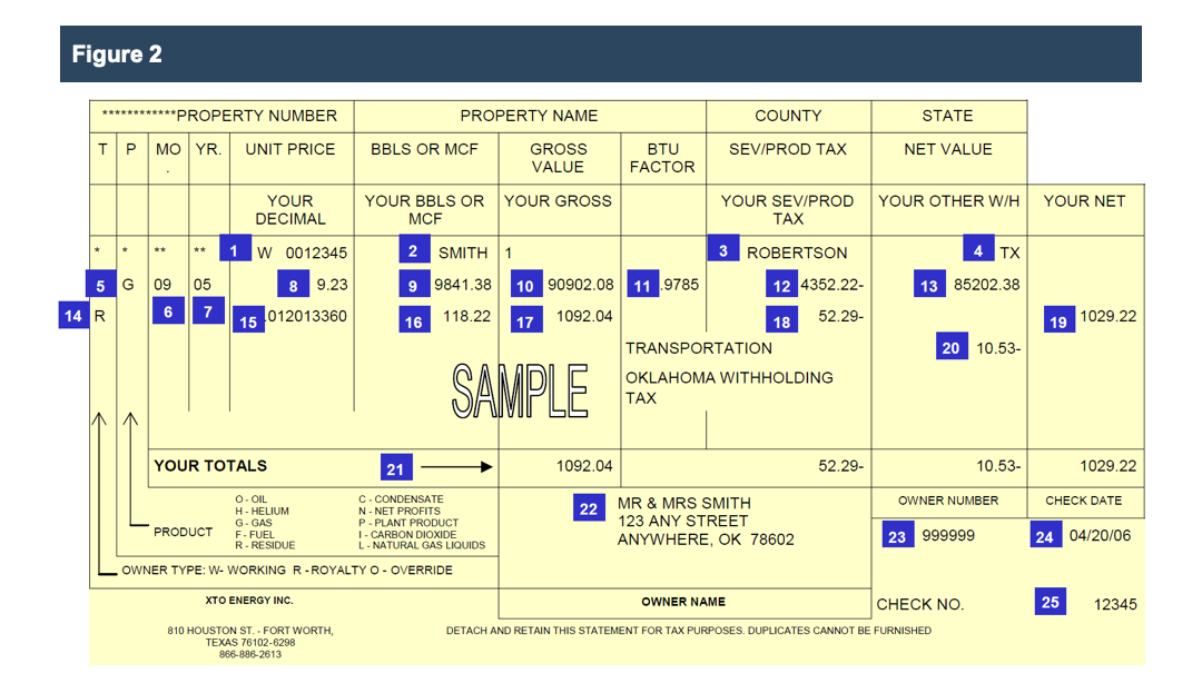 We frequently receive calls from mineral interest owners who know little about what they own other than the operator’s name on the check and the amount they receive each month. Besides just the amount paid by the operator, royalty checks provide valuable information to mineral owners that can help determine the value of their minerals.