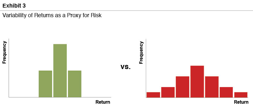 Peter Bernstein defined risk succinctly: “Risk doesn’t mean danger – it just means not knowing what the future holds.” As depicted in Exhibit 3, the most common basis for measuring financial risk is the dispersion, or variability, of potential financial outcomes.