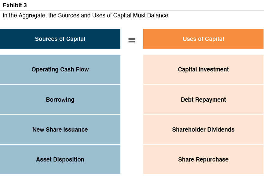 The ability to configure the desired mix of return components is constrained by the availability of incremental debt and equity capital.For example, for a given level of operating cash flow and capital investment, higher dividends can be achieved through incremental borrowing, new share issuance, or asset sales.In each case, boosting dividend yield would come at the expense of capital appreciation.Incremental borrowing capacity may be limited if the company’s capital structure is already optimally leveraged.For family businesses, it may be infeasible to issue illiquid shares at a fair price.And asset sales are not a sustainable source of cash flow.