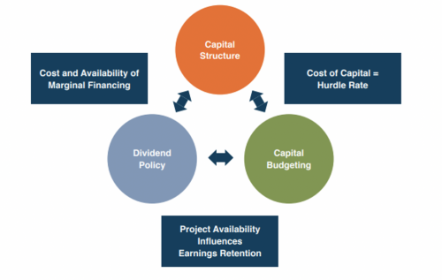 The capital structure and capital budgeting decisions are linked by the cost of capital. There is a mutually reinforcing relationship between the value of the family business and the cost of capital, as each one influences, and is in turn influenced by, the other. The cost of capital depends on both the financing mix of the company and the riskiness of capital projects undertaken. The cost of capital also serves as the hurdle rate when evaluating potential capital projects.