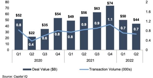 U.S. Deal Value and Volume: Q1-2020 to Q2-20222