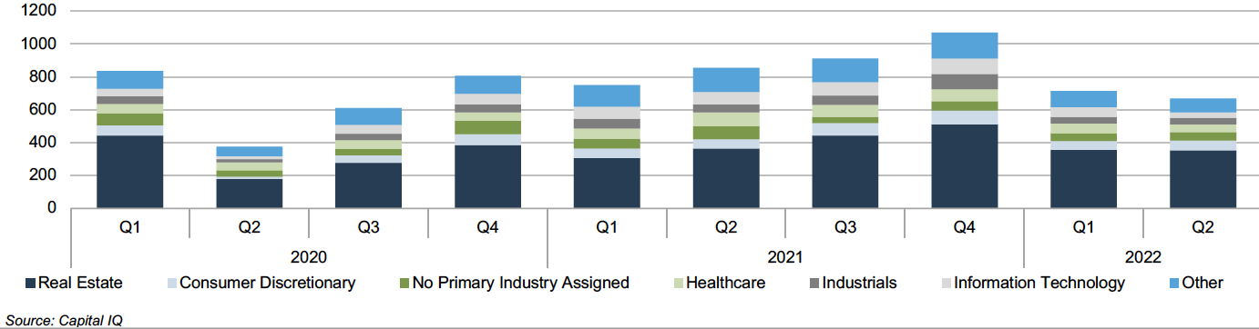 U.S. Deal Volume by Industry: Q1-2020 to Q2-2022