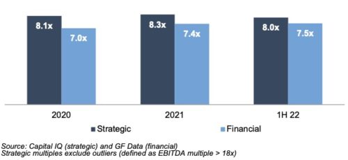 EBITDA Multiples by Buyer Type: 2020 to 1H 2022