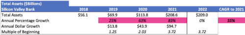 SVB grew its assets at higher rates and larger dollars in 2020 and 2021. The bottom line is that SVB grew its assets each year at amounts equal to some of the largest banks in the country after their many years of historical growth.