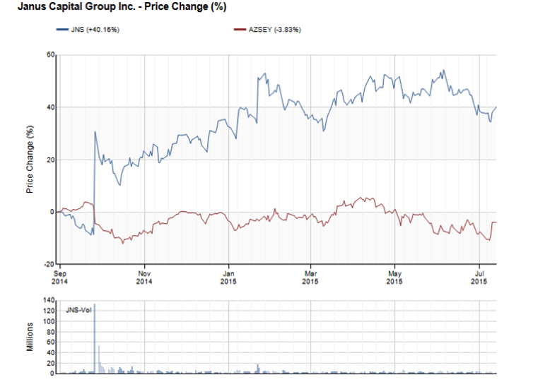And, of course, asset flows do have impact on value. PIMCO’s parent, Allianz, has pretty well underperformed Janus since Gross left.