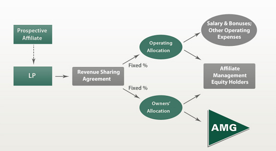 Contingent consideration doesn’t always have to be based on future earnings. Perhaps the most acquisitive business in the RIA space is Affiliated Managers Group, whose investment model includes a revenue sharing agreement whereby the target’s fees are split (at a fixed percentage) into two segments: the operating allocation and the owners’ allocation. The operating allocation covers all operating expenses of the affiliate (target) at the discretion of the target’s management, while the owner’s allocation goes to the firm’s partners and AMG according to their respective ownership interest in the business.