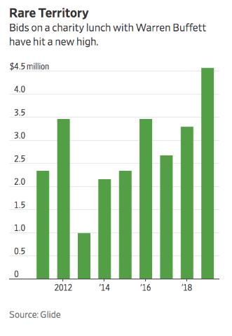 Even the world’s greatest value investor (and perhaps the greatest investor of all time) is struggling to keep pace with the market. Warren Buffet’s Berkshire Hathaway is up just 2% so far this year compared to just over 15% for the S&P 500 and 25% (on average) for the FANG stocks. Fortunately, this hasn’t curtailed Buffet’s ability to raise money for a good cause, as the current bid for his annual charity lunch currently resides at $4.6 million.