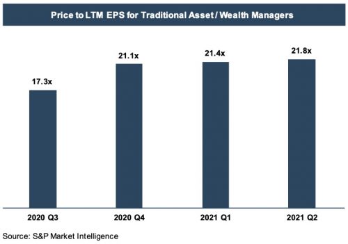 RIA stocks continued to have strong performance during the second quarter, with most individual stocks in our indices hovering near 52-week highs today. Performance varied by sector, with alternative asset managers faring particularly well over the last quarter. Our index of alternative asset managers was up 26% during the quarter, reflecting bullish investor sentiment for these companies based in part on long-term secular tailwinds resulting from rising asset allocations to alternative assets. The index of traditional asset and wealth managers rose 15% during the quarter, with performance driven by rising AUM balances and favorable market conditions. The stock price performance of RIA aggregators trailed other categories, with the aggregator index increasing only 6% during the quarter. Weak relative performance for the RIA aggregators may be reflective of mixed investor sentiment towards the aggregator model.
