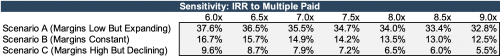 The sensitivity table below shows the buyer’s IRR in each scenario as a function of the multiple paid. For a given multiple, the IRR is highest in Scenario A (margins low but expanding) and lowest in Scenario C (margins high but declining). In Scenario A, the buyer can afford to pay a higher multiple and still generate an attractive rate of return (a 9.0x multiple results in an IRR of 32.8%). In Scenarios B and C, however, the buyer must pay a lower multiple in order to generate the same IRR, even though the initial margin is higher. The implication of the analysis above is that the prospect for future margins is much more important than the current margin when determining the appropriate multiple for an RIA. The market for different segments of the investment management industry tends to reflect this. Institutional asset managers – while they can have very high margins – tend to command lower multiples than HNW wealth managers, which often have lower margins. The reasons for this are many: asset managers are more exposed to fee pressure, trends towards passive investing, and client concentrations, among other factors. These factors suggest an increased likelihood for lower margins in the future for asset managers. HNW wealth managers, on the other hand, often have lower but more robust margins due to their relatively sticky client base, growing client demographic (HNW individuals), and insulation from fee pressure that has affected other areas of the industry.