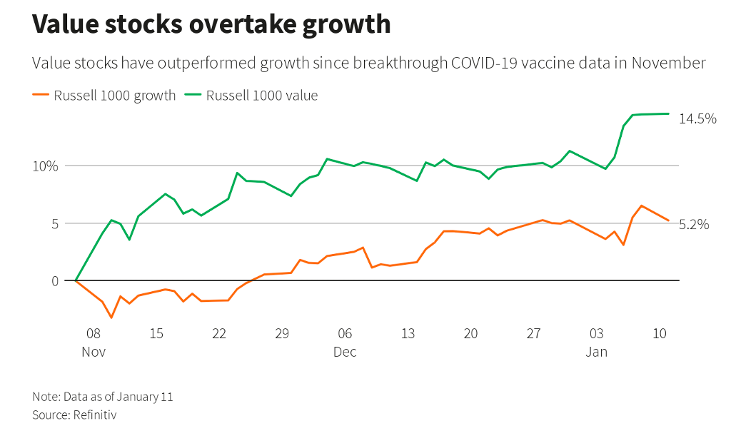 With rapid vaccination rollouts and continued improvements in the global economy, value stocks, which were especially depressed by the pandemic this time last year, have soared relative to growth strategies over the last few months.