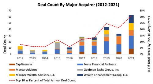 Below are a handful of RIA aggregators that have led M&A activity in 2021.