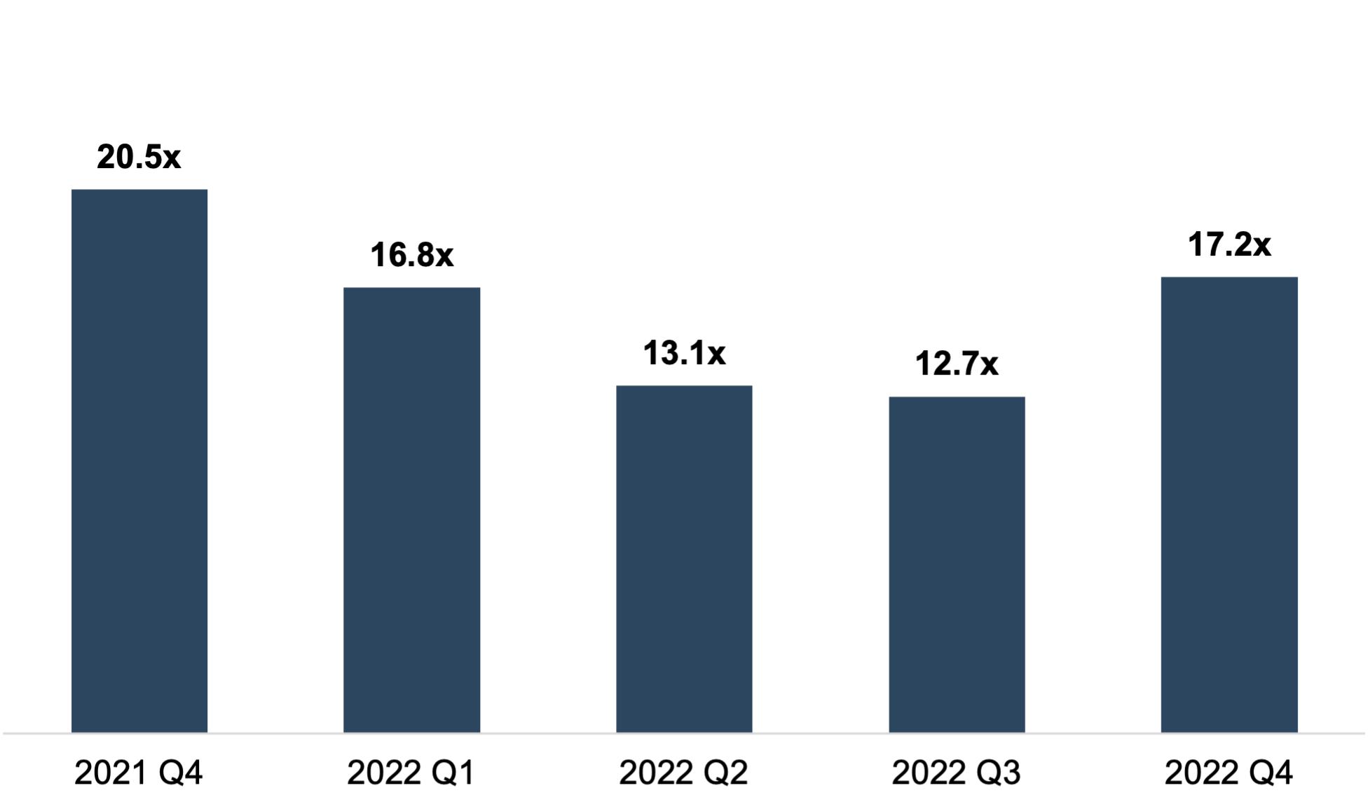 Public RIA LTM earnings multiples are up 35% from the end of Q3 to the end of Q4. After steadily increasing over the second half of 2020 and throughout 2021, LTM earnings multiples for publicly traded asset and wealth managers have dropped 16% this year, reflecting investor anticipation of lower revenue and earnings from the recent market decline and rising cost structure. See the price-to-LTM earnings ratio for Traditional Asset / Wealth Managers below.