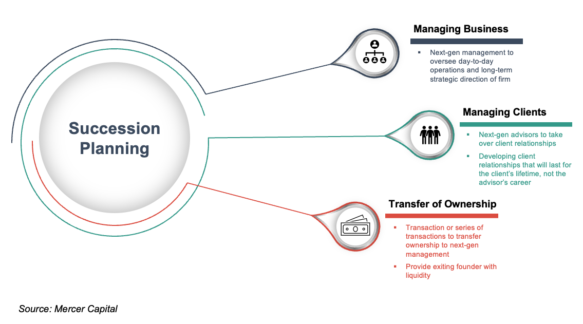 Perhaps the most viable and frequently employed option to minimize key person risk and departure is developing a viable succession plan that gradually transitions firm management, client relationships, and ownership to the next generation of company leadership.