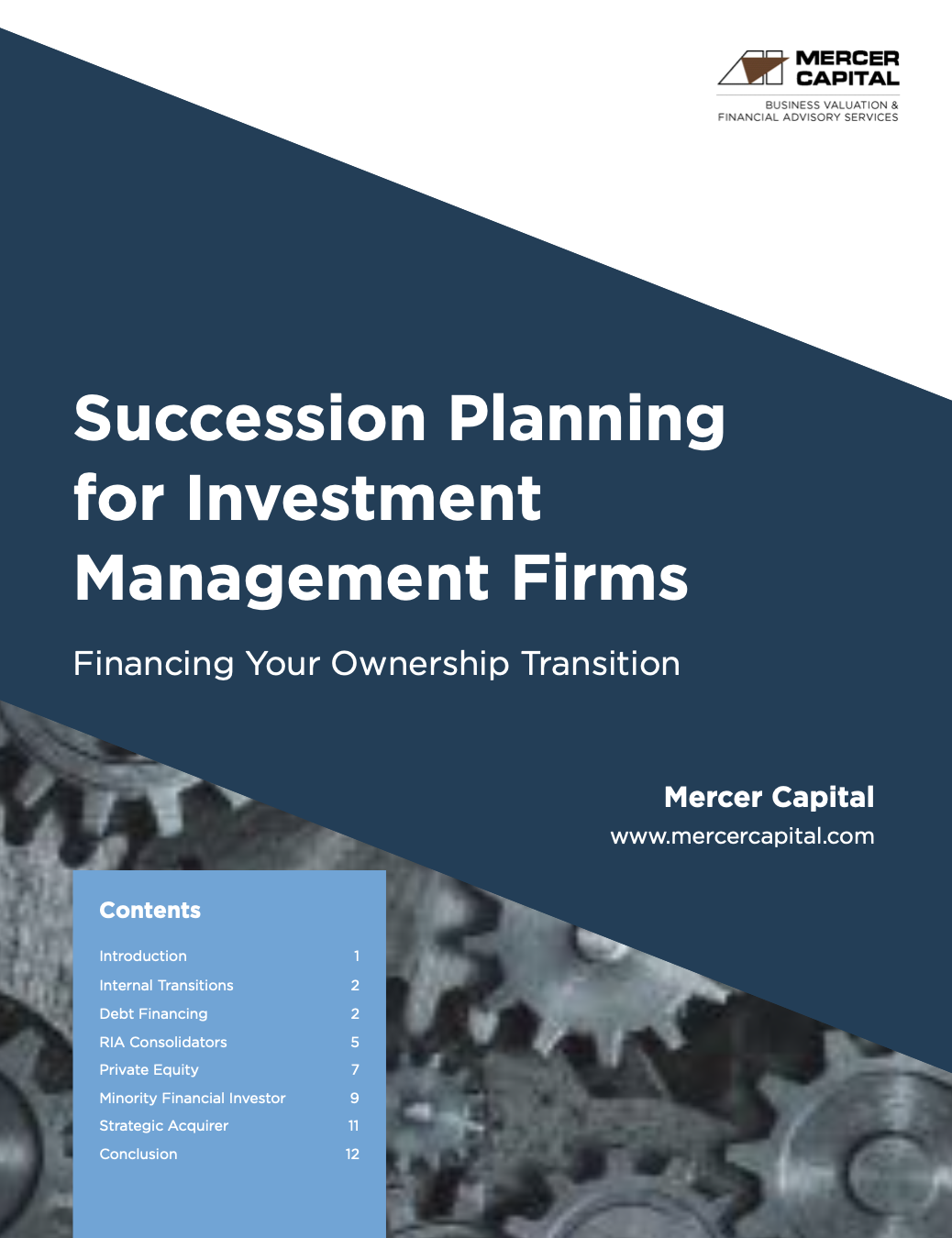 For this week’s edition of RIA Valuation Insights, we revisit our whitepaper, "Succession Planning for Investment Management Firms." The updated whitepaper complements next week's webinar, "Succession Planning for RIAs: Transition with Confidence," with RIA team leader and CEO of Mercer Capital, Matt Crow and RIA senior team member and Senior Vice President, Brooks Hamner.