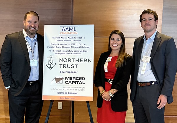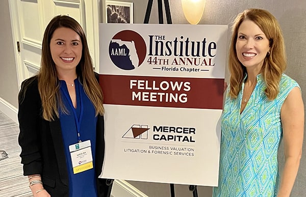 As we assist with complex financial and valuation issues on many Florida matters, this year we decided to sponsor and attend the AAML Florida Chapter Annual Institute. We enjoyed meeting and seeing familiar faces, and also appreciated conversations about complex valuation and financial issues. Mercer Capital’s Litigation Team looks forward to attending in future years!