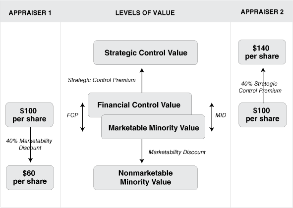 In any multiple appraiser valuation process, if one appraiser believes that the appropriate level of value is strategic control and the other believes that the nonmarketable minority level of value is appropriate, the disparity in their conclusions will be wide. That is why business owners have to agree on these two important elements that help to specify the appraisals that will be performed based on their buy-sell agreements.