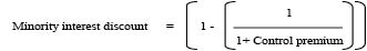 The following formula provides an expression of the percentage minority interest discount as a function of an assumed percentage control premium. Although the expression is useful in identifying the minority interest discount as a percentage of an assumed or developed measure of control value, it is rarely used in a direct sense in the valuation of minority interests.